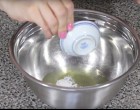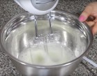 3. A tojásfehérjét a sütőporral verjük fel habbá.