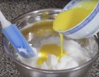 5. A kemény habot és a tojássárgájás-túrós masszát öntsük egymáshoz és utoljára, alaposan keverjük össze.