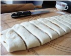 Szeleteljük vastag szeletekre a tésztát.