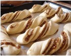 Két kézzel fogjuk meg és csavarjuk meg a rudakat, tegyük egy sütőpapírral bélelt tepsibe, kenjük meg mindegyik rudacskát tojássárgájával és meleg helyen, hagyjuk még állni, 20 percet.
