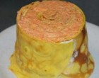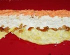 A töltelék elkészítéséhez főzzük meg a megtisztított zöldségeket és a tojást, majd reszeljük le őket és tegyük külön tányérokba. Minden tányérra tett zöldséget keverjünk össze majonézzel. Szűrjük le a gombát, ha nagydarabok, akkor vágjuk el őket, de néhány egész darabot tegyünk félre a díszítéshez. Vágjuk fel a sonkát, a krémsajtból tegyünk félre egy keveset, a többit pedig keverjük össze a majonézzel.
