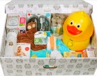 • Kapucnis fürdőköpeny, körömvágóolló, hajkefe, fogkefe, víz hőfokmérő, babakrém