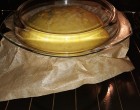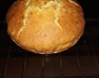0.5 kg lisztet, 1 tk sót, 1 tk cukrot, 1 tk szódabikarbónát, 2 natúr joghurtot és 2 dl vizet tessék-lássék módon összekevertem, nem kell nagyon kidolgozni a tésztát. Ragacsos tésztát fogsz kapni, de ettől ne ijedj meg. Majd 180 fokos előmelegített sütőben 40-50 percet sütöttem. 40 percig a jénai teteje is rajta volt és csak az utolsó 10 percben vettem le. Alsó-felső sütésen. Én tettem a jénaiba sütőpapírt is.