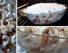 Egy hőálló edényt kenjünk ki a hagyma alól elvett egy evőkanál zsírral és a következő képpen rétegezzük: alulra tegyük a galuskát, a tetejére a hagymát a zsírral együtt, erre következnek a szalonnakockák, majd a tetejére egy kis tejföl. Így képezzük a következő réteget is. A tetejét szórjuk meg reszelt sajttal és 180 fokos sütőben süssük meg 15 perc alatt.