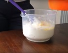Adjuk hozzá a túrót és a tejfölt, kevergessük, amíg krémes állagú lesz. A tojásfehérjéből verjünk kemény habot, majd keverjük hozzá a túrós krémhez és adjuk hozzá a vaníliaaromát. A krémet tegyük a hűtőbe.