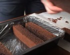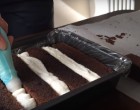 A kakaós tésztát vágjuk 10 egyenlő csíkra.