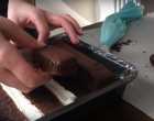 A csokoládémáz: a csokoládét tördeljük apró darabokra és tegyük egy edénybe a vajjal együtt, gőz felett olvasszuk meg, majd kenjük el a tészta tetején. Tegyük 30 percre hűtőszekrénybe.