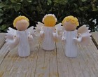 11. Készítsünk egy kisebb nagyságú fejformát gyurmából, majd válasszuk ki a megfelelő formájú és méretű tésztát az angyalka testének, kezének, ruhájának, hajának és szárnyának. A tésztákat egymáshoz rögzíthetjük gyurmával vagy ragasztóval. Különböző alakú angyalkát készíthetünk, ha van egy kis fantáziánk.