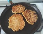 Úgy készül mint a krumplis tócsni, csak krumpli és bors helyett alma, fahéj és cukor van benne és egy pici sütőpor.