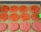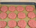 Minden húspogácsára tegyünk egy szelet hagymát és kenjük meg tejföllel.