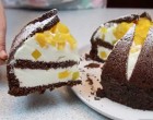 Mikor a tészta megsült, hagyjuk hűlni, a legjobb ha 4 – 5 órát áll, így könnyen szeletelhető. A tésztát vegyük ki a tortaformából és hosszában vágjuk három részre, az egyik lap legyen kicsivel vékonyabb mint a többi.