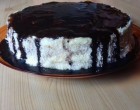 Az így kapott krémet kenjük a lapok közé. Pici krémet hagyva a felső lapra és a torta oldalára. A torta oldalát meghintjük kókuszreszelékkel.
