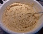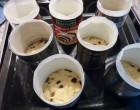 Tegyük a tésztát az előkészített sütőformákba (vajjal kikent és liszttel megszórt, vagy sütőpapírral kibélelt) kanállal rakjuk a formákba az elkészített tésztát úgy, hogy a tészta ne haladja meg a forma magasságának az egyharmadát, a tészta tetejét igazítsuk el egy kanállal.