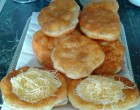 A sajtot lereszeljük. A tejfölt kikeverjük az átnyomott fokhagymával és egy csipet sóval. Olajos kézzel széthúzogatjuk a tésztát, és bő olajban kisütjük. Az első oldalát fedővel lefedve, a másik oldalát fedő nélkül sütjük.