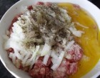1. A darált húst, a felszeletelt hagymát, az 1 tojást, a sót és a borsot tedd keverd jól össze.