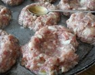 3. Formázz kis golyókat a húsból és tedd a tepsibe, vagy a hőálló edénybe. Egy kanál segítségével nyomj egy lyukat minden golyó közepébe.