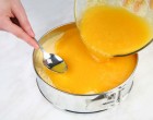 A barackbefőtt levéből kiveszünk néhány evőkanálnyit és meglangyosítjuk, feloldjuk benne a zselatint. A lecsöpögtetett barackokat egy tálba tesszük és robotgéppel pépesítjük, hozzákeverjük a zselatint. A torta tetejére öntjük és hűtőbe tesszük legalább 3 órára.