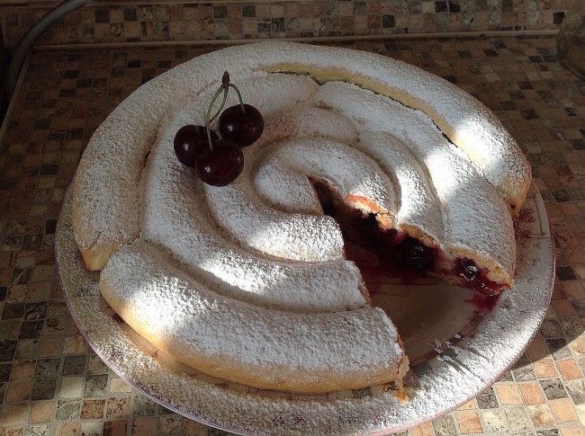 Amikor a pite elkészült vegyük ki a sütőformából, szórjuk meg porcukorral majd szeleteljük.
