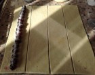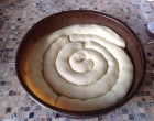 A tésztarudakat rakjuk egy kerek sütőformába, csiga alakot alkotva. Tegyük be a sütőbe és süssük 200 fokon, ameddig szép aranyszínű lesz (kb. 30 – 40 perc).