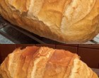 Az edénybe alól sütőpapír van. A sütőpapír alá és a tésztára is vizet spriccelek és duplájára kelesztem beborítom. mikor megkelt pengével bevágom és újra lespriccelem. Beborítom és 250 fokos forró sütőbe mehet .Sütöm 15 percig, majd mérséklem a hőt 200 fokra 40 percig utána tető nélkül a szép piros szín eléréséig tovább sütöm ha kell. Erős arany barnára kell sütni, mert különben nem fog cserepesedni!!!!A sütőből mikor kiveszem lespriccelem vízzel. Nagyon finom ropogós, cserepes de lágy belsejű kenyerünk lesz.