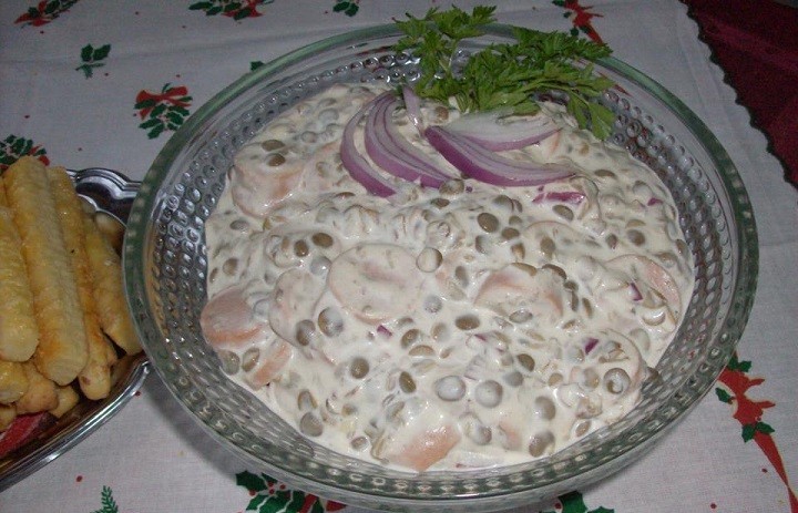 Hozzávalók:virsli,lencse,lila hagyma,csemegeuborka,mustár,majonéz,tejföl,bors,sóElkészítése:lencsét vízben megfőzzük babérlevelet és fokhagymát és ételízesítőt teszünk a vízbe.Ha kész leszűrjük és lehűtjük.Virslit is megfőzzük és felkarikázzuk.Egy tálba rakjuk őket,adunk hozzá apróra vágott csemegeuborkát,szintén apróra vágott lila hagymát.Rárakjuk a majonézt,mustárt,tejfölt,borsot és sót.Összekeverjük és hideg helyre tesszük