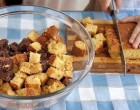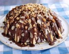 Öntsük rá a megmaradt csokoládét a tortára. Szórjuk meg a torta tetejét darált dióval (mi mogyorót és mandulát használtunk). Hagyjuk, hogy a csokoládé megkeményedjen, utána szeleteljük.