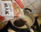 A kiflit felkarikázzuk, egy tálat kivajazunk és a kifli felét elterítjük benne.A 2 csomag pudingporhoz hozzáadjuk a cukrot a tejet és sűrűre főzzük... majd hozzákeverjük a darált mákot Így néz ki a mákos puding :))