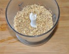 Először készítsük el a tölteléket, aprítógépben daráljuk le diót, majd adjuk hozzá a vízben feloldott 80 g cukrot és keverjük össze.