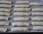 Nyújtsuk el mindegyiket és töltsük meg a diós töltelékkel, tekerjük fel.