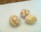 Vágjuk le mindegyik fej fokhagymának a felső részé , hogy lássuk a fokhagymagerezdeket.