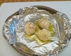 Tegyük a 3 fej fokhagymát egy alufóliával bélelt hőálló tálba, locsoljuk meg olívaolajjal, majd 170 fokos sütőben süssük puhára.