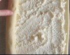 A tehéntúrót keverjük ki a tojással és a cukorral, ha a túró nagyon vizes, akkor adjunk hozzá egy kevés lisztet vagy prézlit. Nyújtsuk ki a tésztát téglalap alakúra, a vastagsága kb. fél cm legyen. A kinyújtott tésztára kenjük rá egyenletesen a túrókrémet, majd tekerjük fel, de ne túl szorosan.