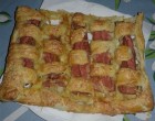 A recept nagyon egyszerű. Mint sokan mások, én is gyakran használok leveles tésztát. Bevallom, nem én csináltam. Fagyasztott leveles tésztát használtam. Kb fél cm vastagra kinyújtottam, majd késsel másfél – két cm-es csíkokra felvágtam. Nem vágtam el egészen a tészta széléig, hogy maradjon egy kis pereme. Aztán ahogy a képen is látszik, belefűztem a virsliket. Lekentem tojással, majd sajttal megszórtam/sima és füstölt sajttal fele – fele arányban. 200 fokra előmelegített sütőben pirosra sütöttem.