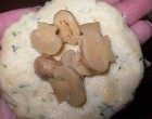 Vizes kézzel formázzunk gombócokat a masszából, majd mindegyik közepébe tegyünk egy adag gombát és nyomkodjuk meg a gombócok széleit, utána pedig forgassuk lisztbe őket.