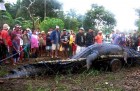Sósvizi krokodil, mint ahogy köztudott, a világ legnagyobb krokodil fajtája és a legnehezebb is egyben. Ezt a képet a Fülöp szigeteken készítették, az állat az orrától a farkáig 6,4 méter hosszú. Három héten keresztül vadászták, 100 ember vett részt a kutatásban, miután 20 éven keresztül terrorizálta a falu lakóit.