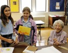 A képen szereplő néni századik életévét is betöltötte már, s még mindig dolgozik az iskolában; matematikát tanít.