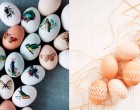 A tojásokat levelekkel, apró gallyakkal és virágokkal díszíteni nagyon egyszerű és gyors megoldás. Emellett igencsak szokatlan és modern is.