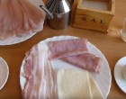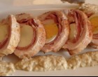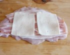 Ezután ossza el a csirkemell filén a bacon szeleteket úgy, hogy az egész filét betakarja vele.