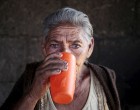 Egy gyerek Hunan tartomány egyik folyójából iszik