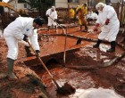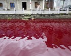 Folyékony mérgező iszap, a magyarországi Kolontáron – nagyon mérgező – csak védőkesztűvel szabad megérinteni
