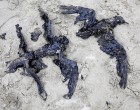Olajkatasztrófa után tengeri madarak tetemei Új-Zélandon