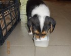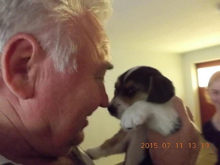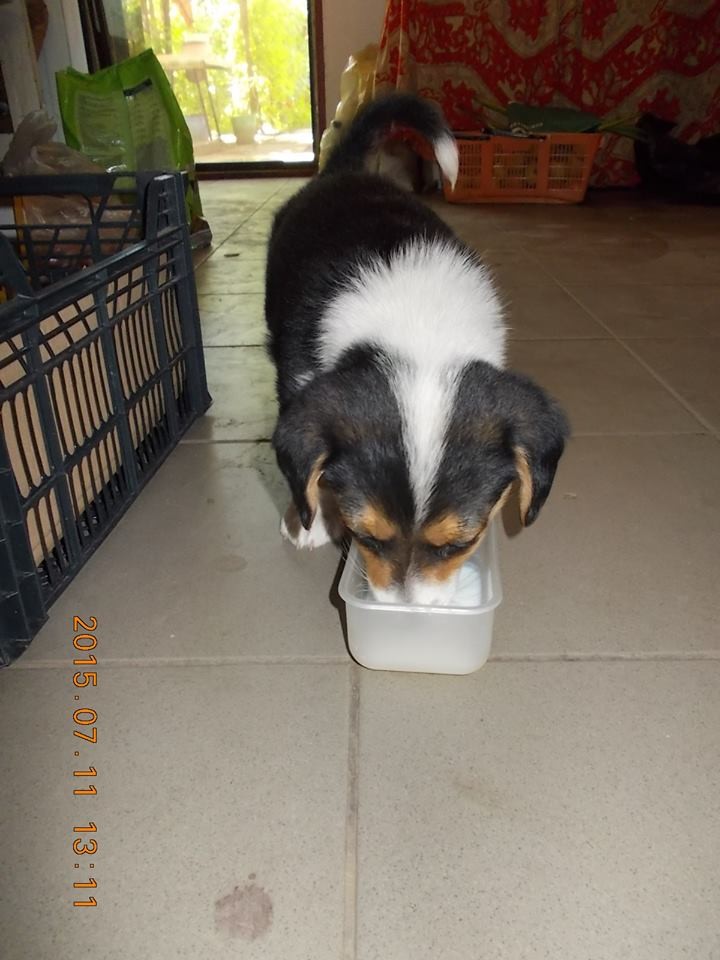 Ezt a kis kutyust aki nálam a Pötyi nevet kapta, 2015.07.11-én vásárolta / 0 forinttért ajándékként/ a kis unokám az édesanyjával a Veresegyházi piacon. A nagy ajándékozási lázban elfelejtette a kutyus eredeti gazdijának, egy kislánynak- vagy a szüleinek a telefonszámát elkérni mivel az nagyon megsiratta és értesíthetnénk arról hogy a kutyus a világ talán leg kutyaszeretőbb gazdijához a vásárló nagypapájához /hozzám/ került. Ezért úgy gondoltam felteszek néhány fotót azzal a céllal, talán a kislány maga vagy valamelyik családtagja, ismerőse felismeri a kutyust és felhívja a kislány figyelmét erre.Ha akarja folyamatosan ellátom fotóval hogyan él és gyarapszik nálunk és ha erre jár meg is látogathatja. Köszönjük ezúton is és minden jókívánságom az ajándékozó családnak!