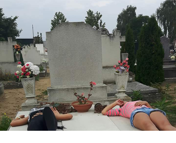 Budapesti temetőben garázdálkodtak és képet is készítettek az esetről a lányok. Felálltak a sírokra, felborították a virágokat, majd le is feküdtek a sírokra.