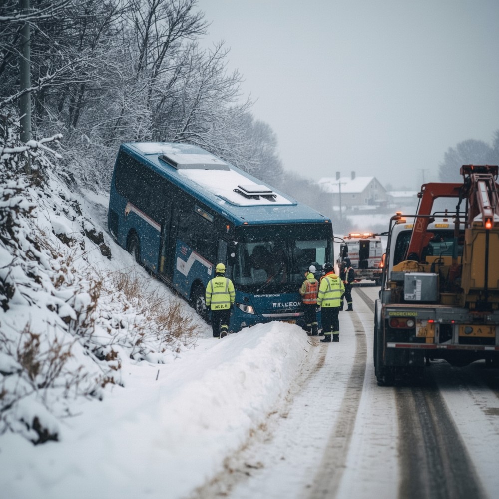 A sofőrök dolgát alaposan megnehezítette a hirtelen jött havazás: pillanatok alatt fehérbe borult minden, az út pedig tükörjéggé vált, amelyen a busz már nem tudott megállni. A jármű fedélzetén több utas is tartózkodott, akik rémülten kapaszkodtak, amikor a busz oldalra billent és az árokban kötött ki.