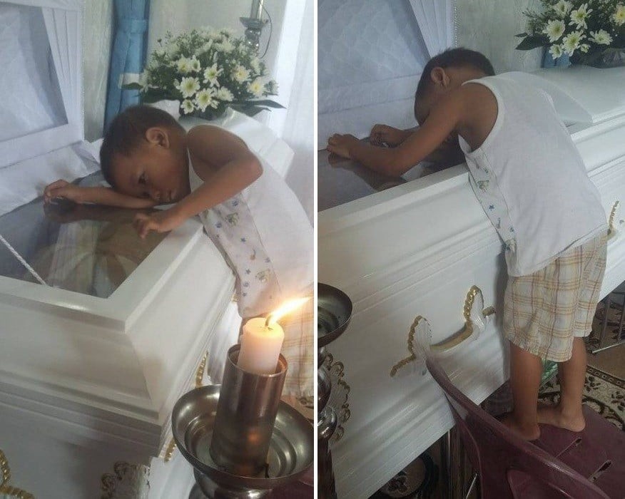 Te mit válaszolnál egy ártatlan gyermeknek, ha megkérdezi tőled: “Miért nem feküdhetek az anyukám mellé?” – írta a képeket készítő családtag a közösségi oldalán. A szívünk belesajdul… “A kisfiú széket tett az édesanyja koporsója mellé, és felmászott, hogy még egyszer, utoljára átölelhesse őt.”
