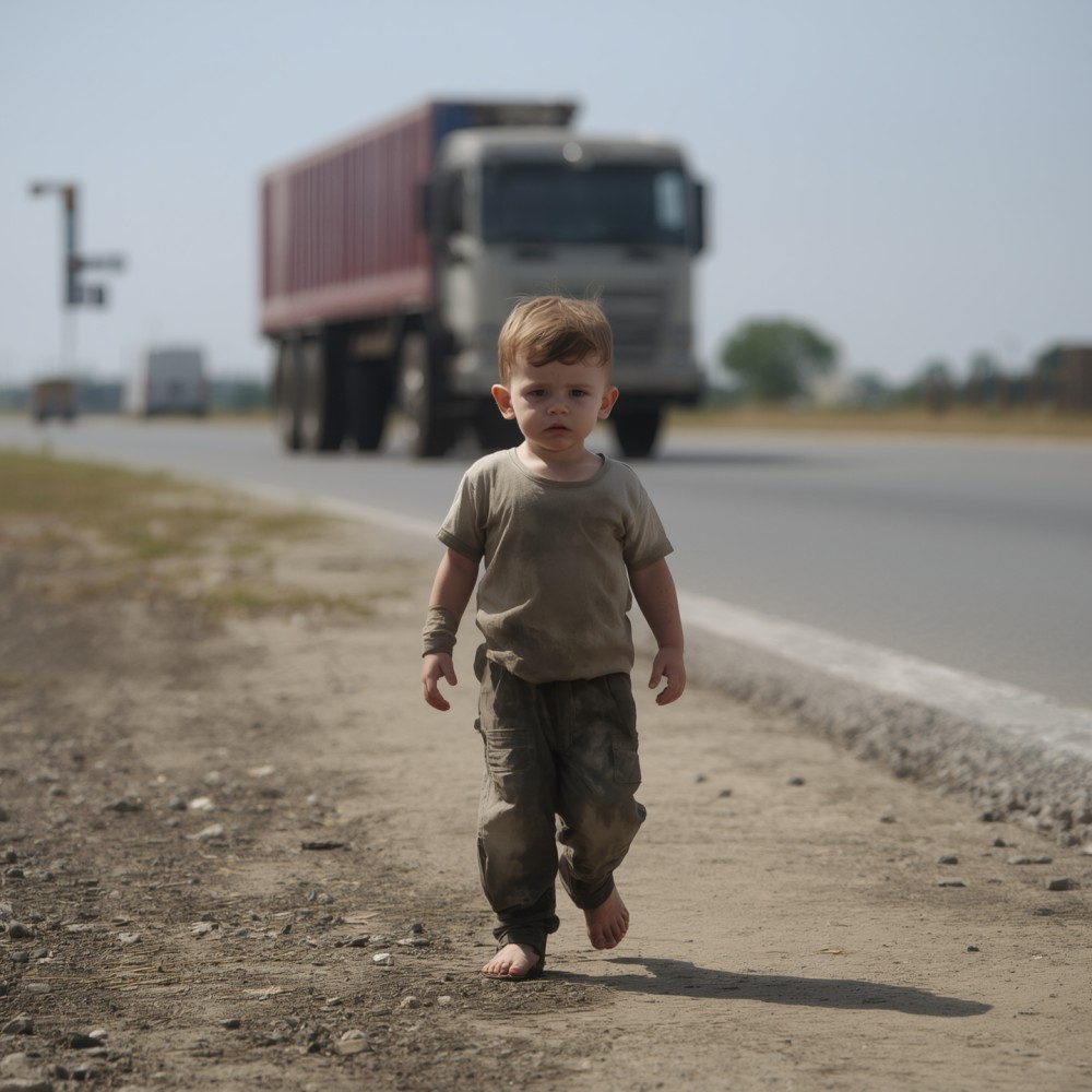 Az országút mellett egy apró gyerek ballagott. A pólója piszkos volt, a nadrágja poros, a cipője szinte kicsúszott a lábáról. A haja csapzottan tapadt a homlokára. Minden mozdulatában ott volt valami megmagyarázhatatlan fájdalom – és valami, ami azonnal megmozdított minden szülői ösztönt a két rendőrben.
