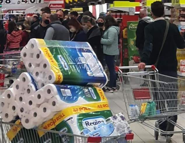 Egymás hegyén hátán a sok vásárló 7 óra előtt pár perccel..A wc papíron két nyugdíjas majdnem összeverekedett