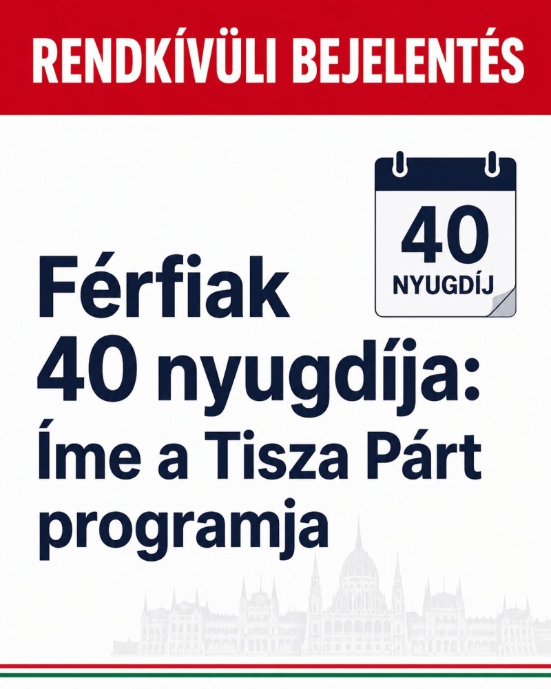 A választási győzelem után egyre több olyan társadalmi és gazdasági kérdés került elő, amely korábban főként kampányígéretként szerepelt a közbeszédben. Ezek közül az egyik legérzékenyebb téma a férfiak kedvezményes nyugdíjba vonulásának lehetősége, vagyis a „Férfiak 40” program, amelyet a Tisza Párt a Nők 40 tapasztalatai alapján vizsgálna meg.