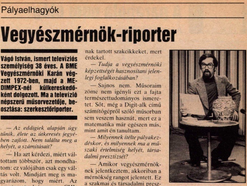 V á g ó I st v án gyógyszer-vegyészmérnöknek tanult, majd a MEDIMPEX külkereskedelmi vállalatnál dolgozott. Képzett idegenvezető, de ezt a szakmát sosem gyakorolta.