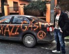 A fotókon jól látszik, hogy valakinek szemet szúrt, hogy Győzike nyíltan vállalta politikai hova tartozását, és ezért narancssárga festékkel rongálta meg az utcán parkoló autóját.